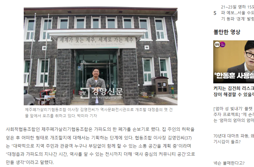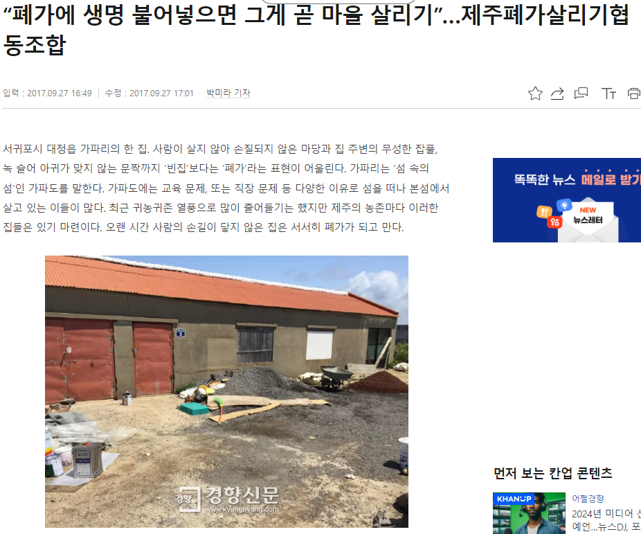“폐가에 생명 불어넣으면 그게 곧 마을 살리기”…제주폐가살리기협동조합(2017.09.27)
